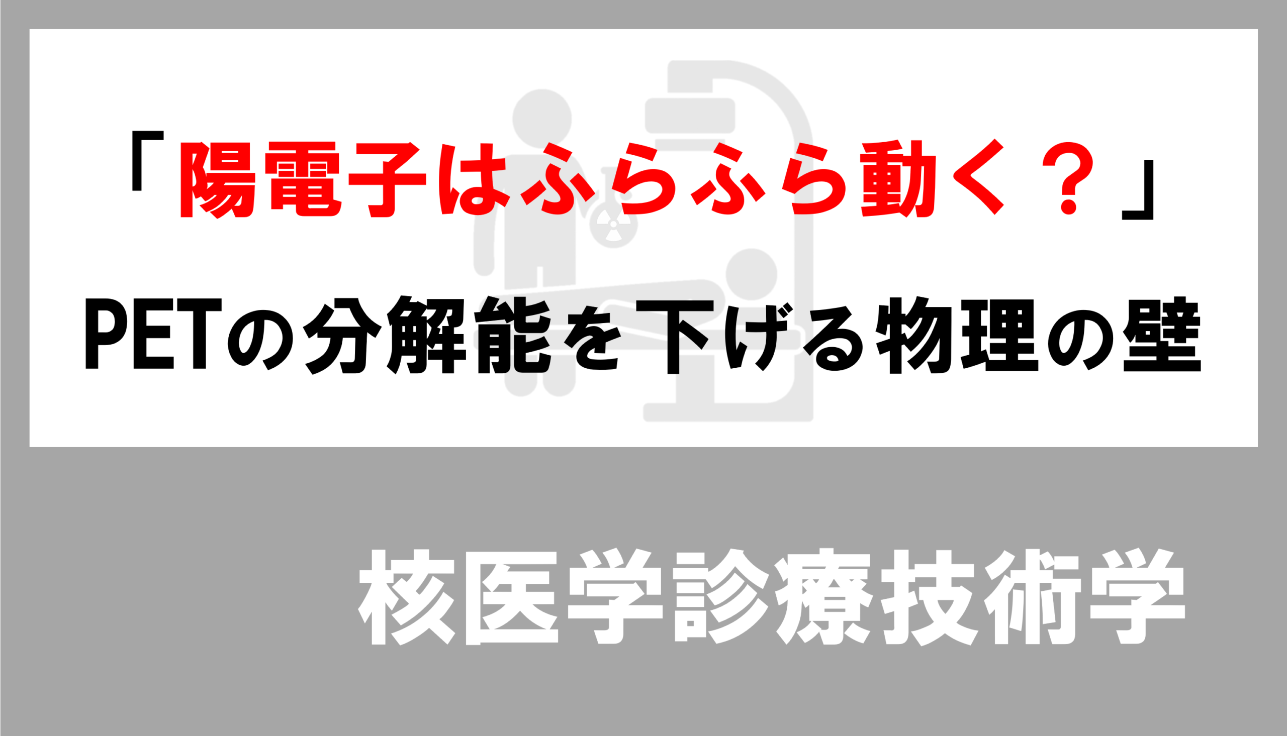 - 現象:放射性核種から飛び出した陽電子は、すぐに消滅するわけではなく、少しふらふらと走って(飛程)、止まってからガンマ線を出します。