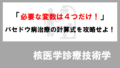 - 「MIBI(ミビ)」と「MIBG(ミベグ)」の混同。