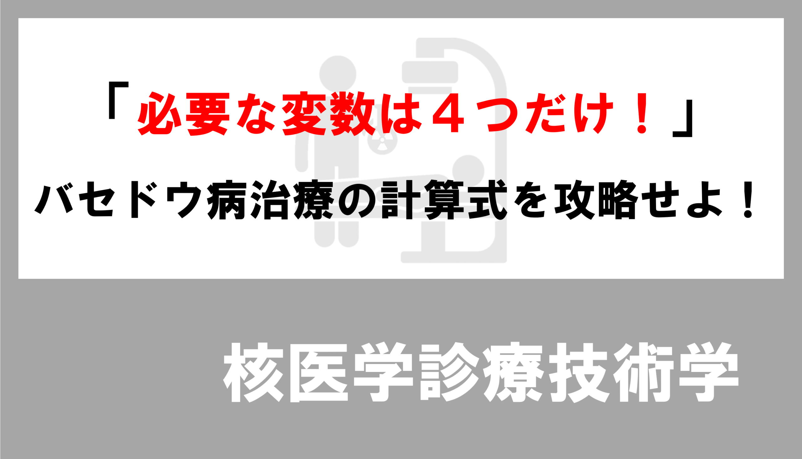 バセドウ病(甲状腺機能亢進症)の治療では、131I(放射性ヨウ素)を飲んで、甲状腺細胞を内側から破壊します。 この時、「どれくらいの量(MBq)を飲ませればいいか?」を決めるのがQuimbyの式です。