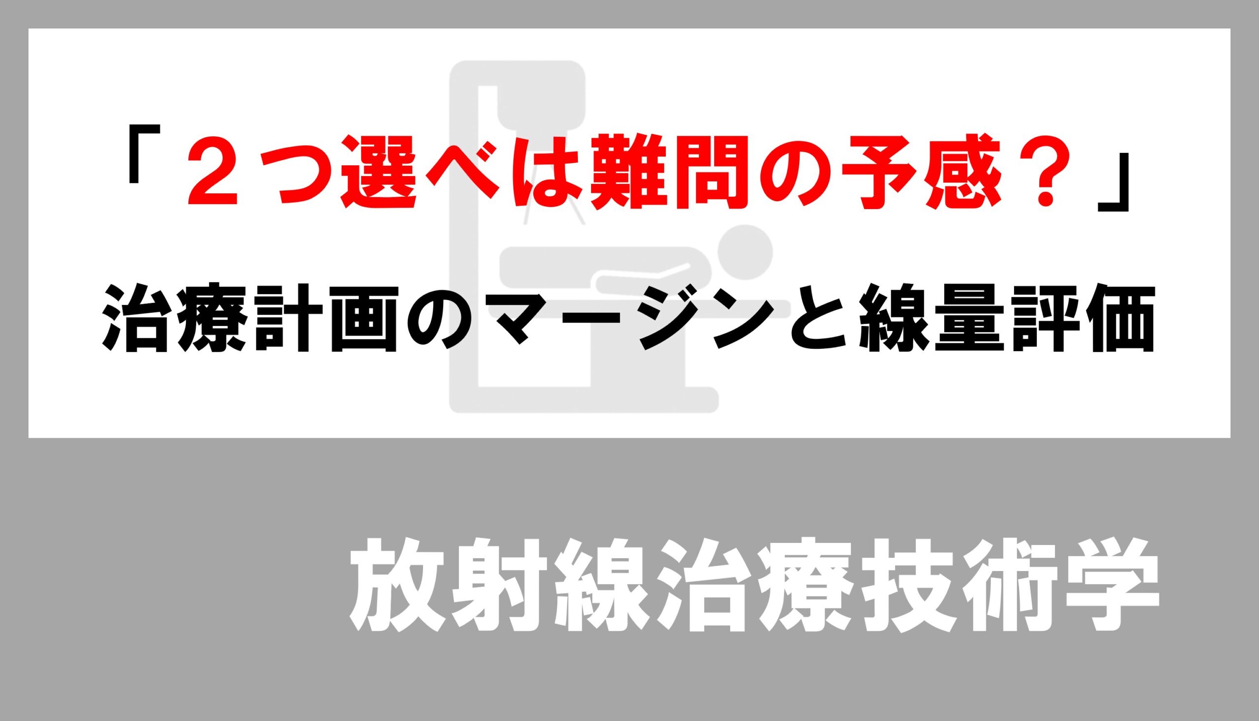 特に選択肢2は、「GTV=腫瘍」と丸暗記しているだけでは迷うかもしれん。 「術後」という状況を想像できるか? 手術で取ったのに、まだGTVがあるとしたら、それは手術失敗(取り残し)じゃろ? 「予防照射」という言葉の裏にある臨床のストーリーを読み取る力が必要なんじゃよ。