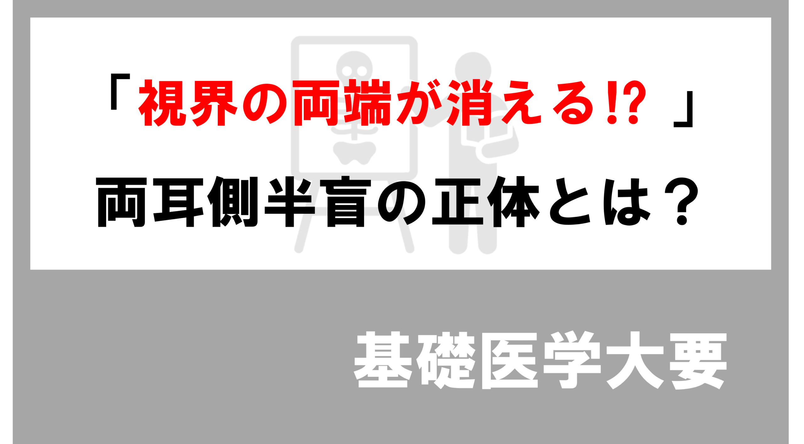 - 両耳側半盲 = 両側の「外側(耳側)」が見えなくなる。