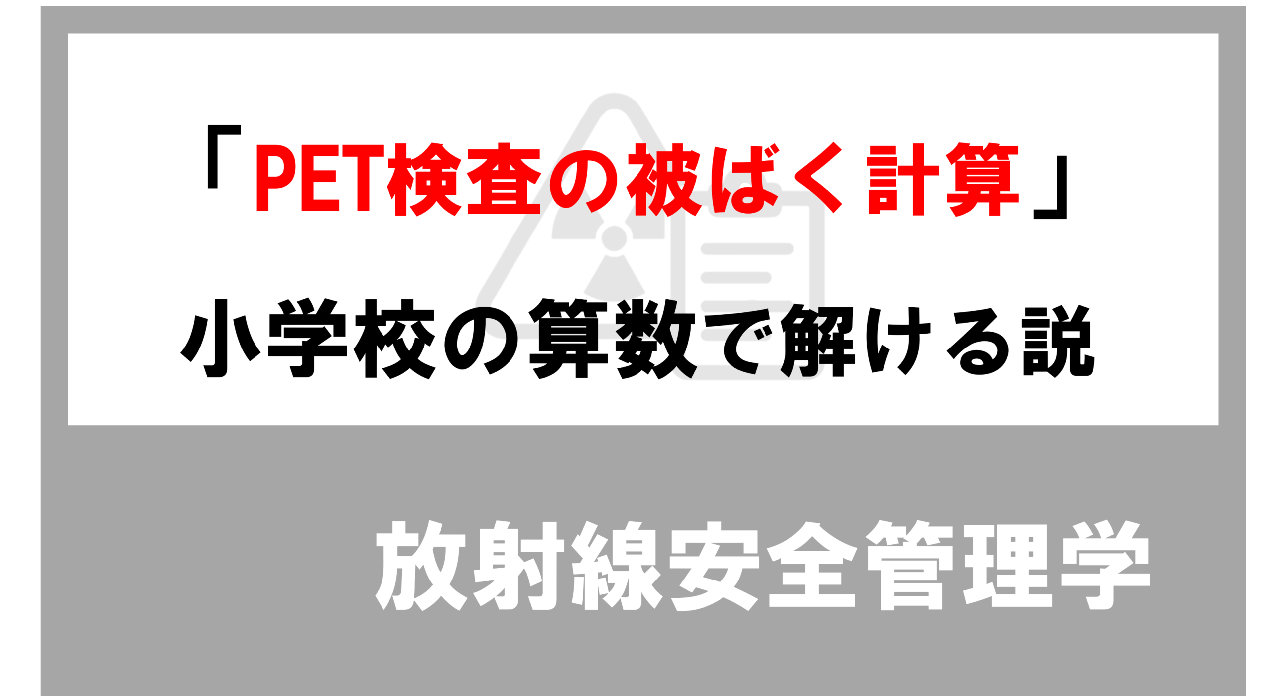 この問題のシチュエーション、PET検査(核医学検査)の現場では非常にリアルです。