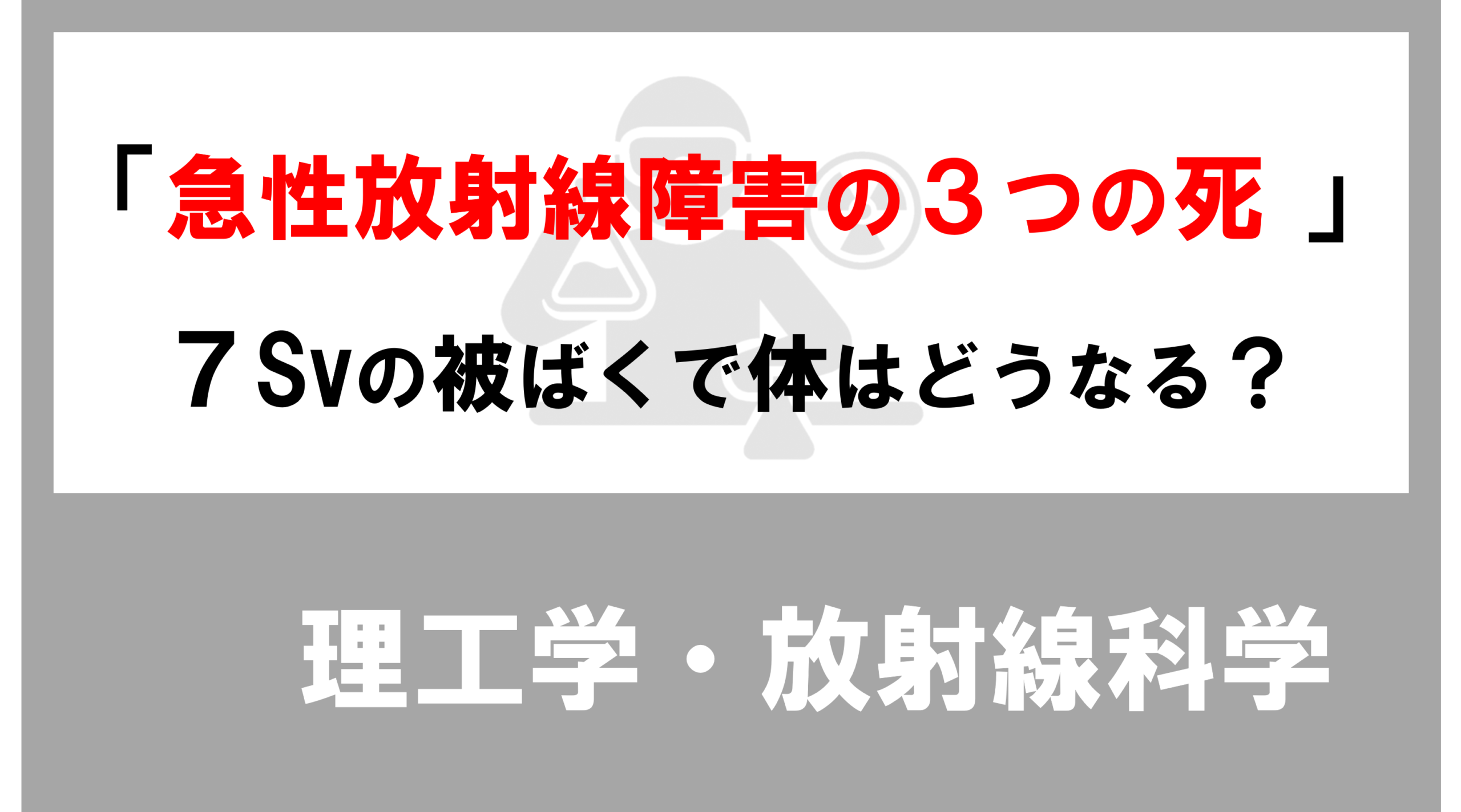 - 7 Svの全身被ばくでは、骨髄の造血機能が停止し、数週間から数か月後に感染症や出血で死亡する「骨髄死」が典型的な経過です。