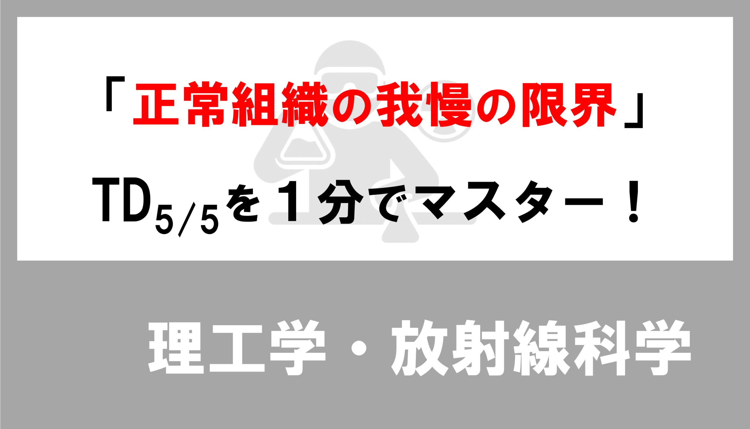 このTD₅/₅は、「がんを叩く線量を、どこまで上げられるか」という上限を決める、極めて重要な概念じゃ。なぜなら、治療線量の上限は、周囲にある正常組織の「我慢の限界(耐容線量)」によって決まるからじゃ。この攻めと守りのバランス感覚こそ、放射線治療の本質じゃぞ。