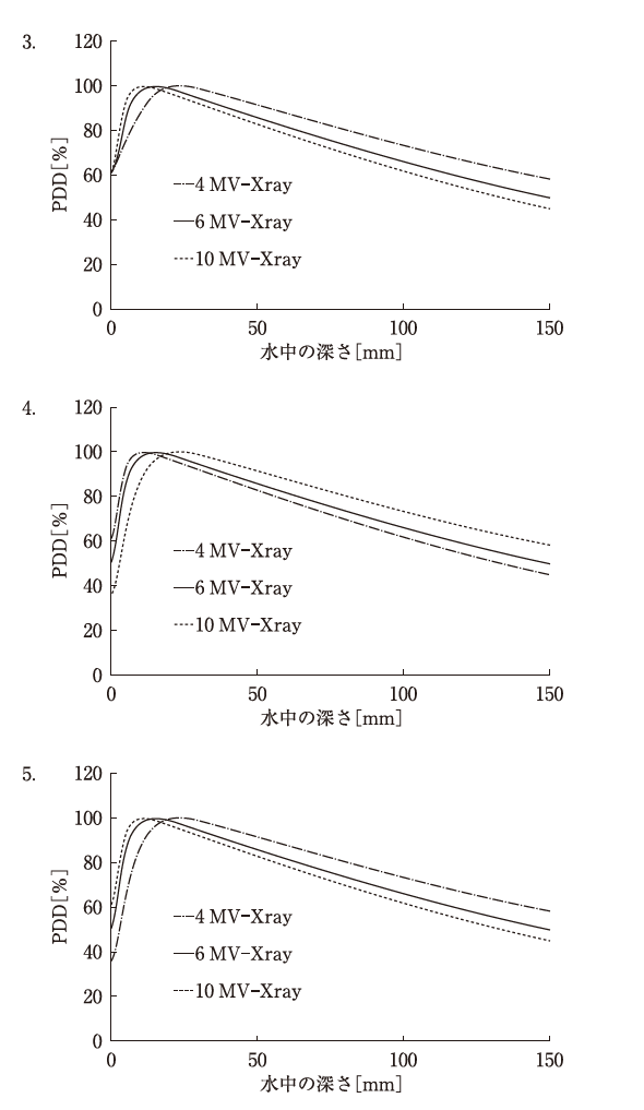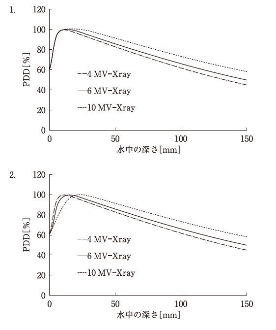 1. 高エネルギーX線のPDD曲線には、エネルギーの違いによって決まる「3大原則」がある。