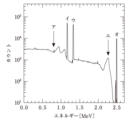 - オ (2.50 MeV) :サムピーク(元のエネルギー2本を足した値)