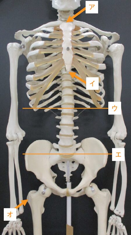 • ウが指しているのは、あばら骨の下のライン、「肋骨弓」です。