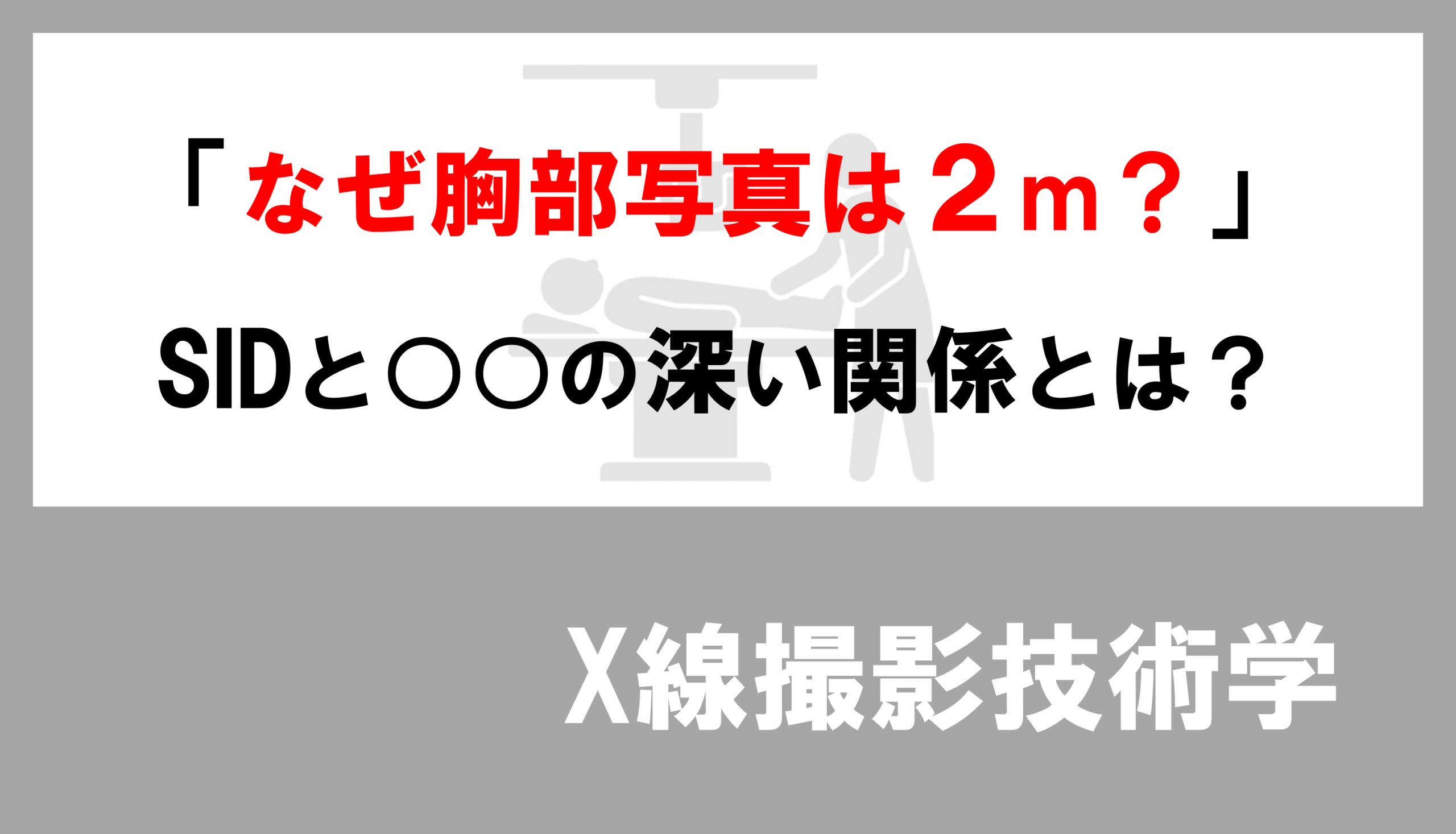 この問題は、胸部レントゲン撮影の「鉄則」である、撮影距離(SID)を2m弱(約180cm〜200cm)も離して撮る理由を理解しているかを問う問題です。
